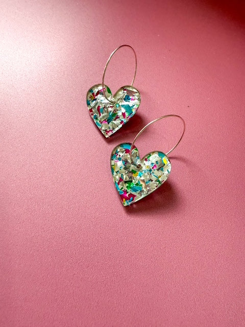 Créoles fines cœurs pailletés – Boucles d’oreilles légères en acier inoxydable