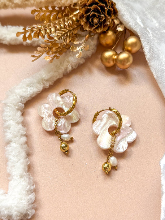Boucles d'oreilles Créoles interchangeables - Daisy Guimauve