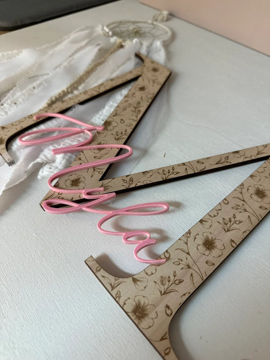 Lettre en bois avec prénom en plexiglass - Thème Floral