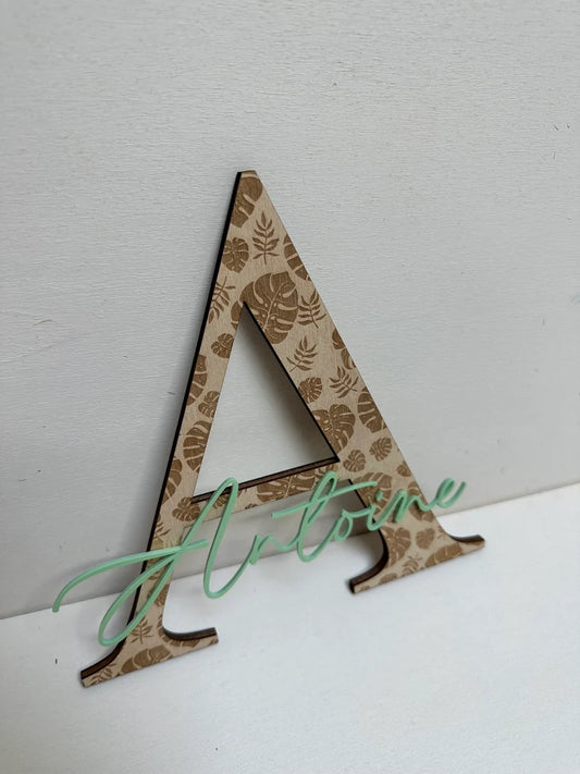 Lettre en bois avec prénom en plexiglass - Thème Jungle