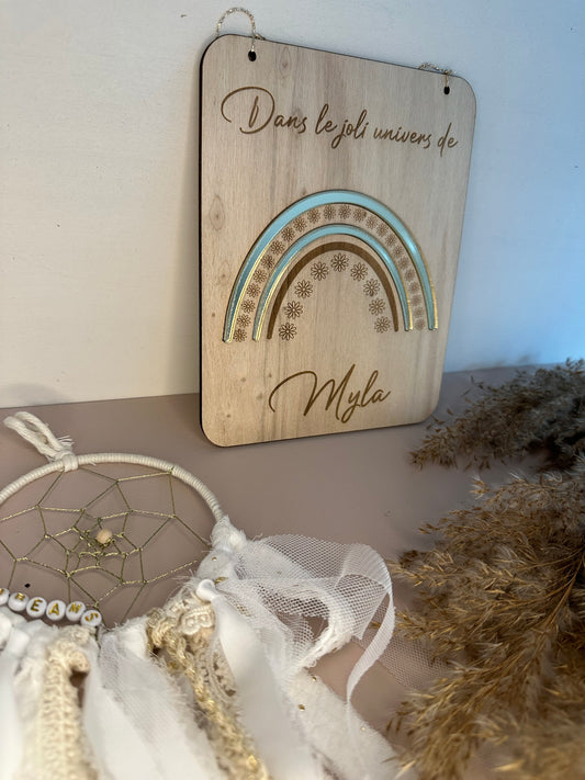 Pancarte - Dans le joli univers de... - thème Arc en ciel pâquerette