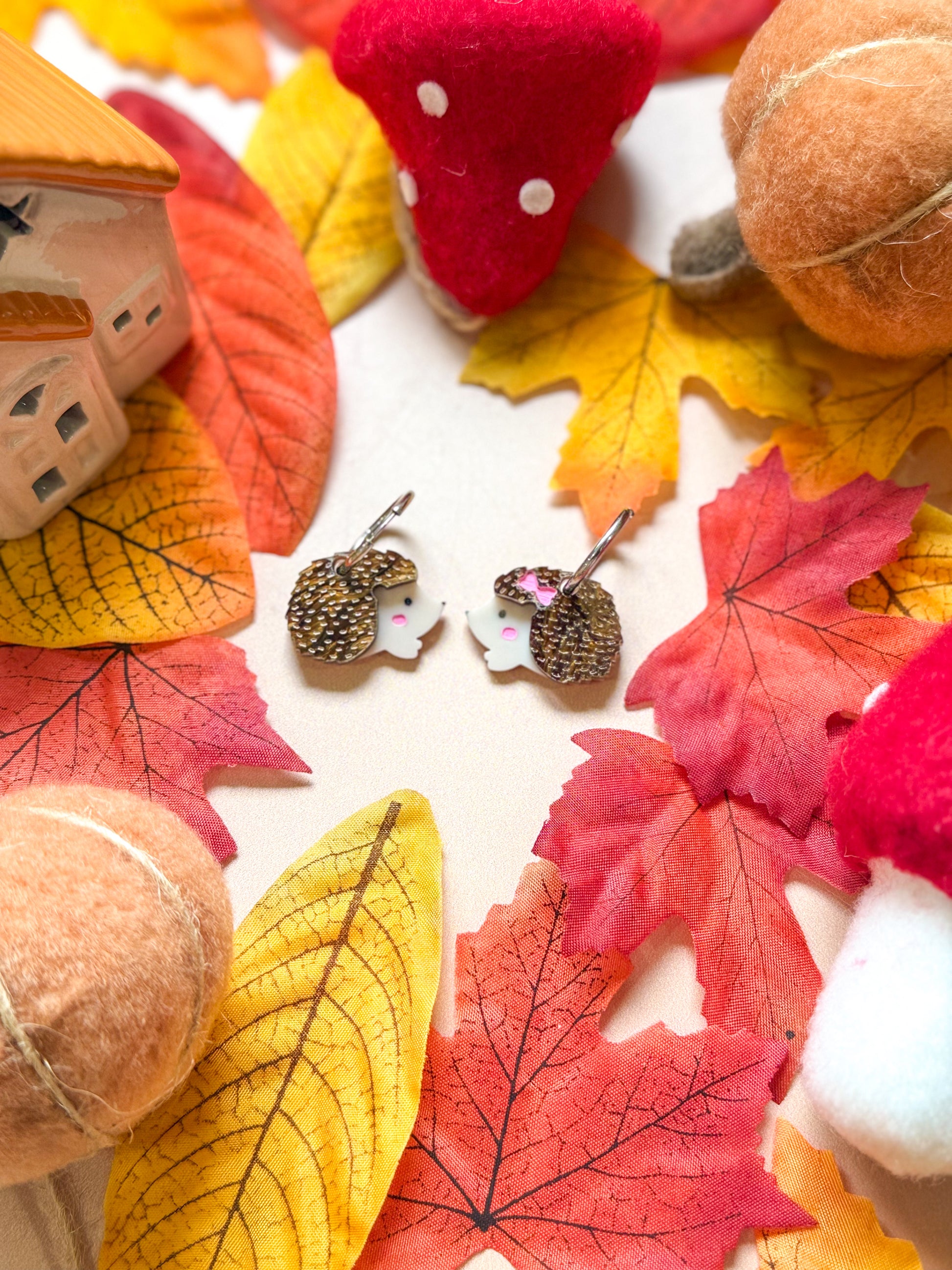 Chaque hérisson est peint à la main avec des détails délicats, pour un rendu adorable et unique. Les touches de couleur et les motifs naturels ajoutent charme et poésie à vos tenues. 🍂🦔