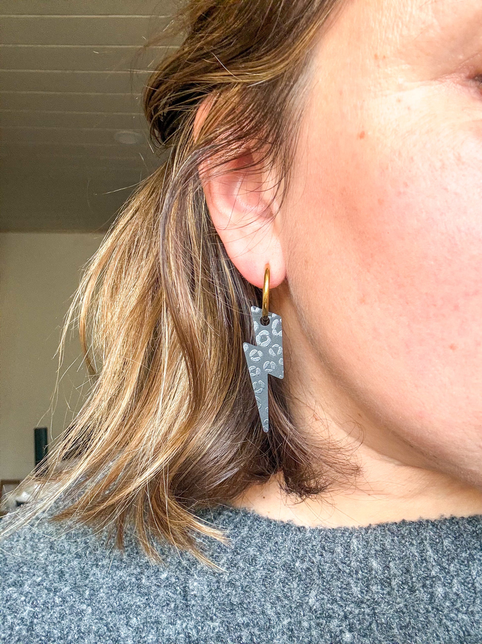 Réalisées en plexiglass noir givré, elles affichent un délicat motif léopard ton-sur-ton : discret, tendance et facile à porter.
